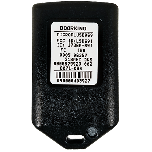The DoorKing MicroPlus Three button model 8071086-nn is the same as 8071-086. These remotes broadcast at 318 MHz frequency and feature a built-in IDTECK proximity coil for dual use with IDTECK and compatible card readers. They are compatible with DoorKing Micro Plus gate receivers. These ARE NOT compatible with the grey MicroClik models.
