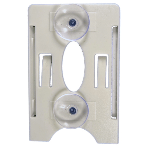 The DoorKing 1815-318 tag holder for DoorKing long-range UHF access cards that mounts to a vehicle windshield. This tag holder mounts to the windshield with a pair of suction cups.