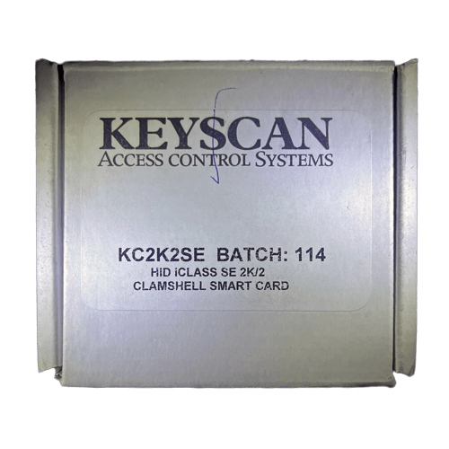 The Keyscan KC2K2SE is a clamshell style proximity card. These prox cards are an HID iClass SE 2K/2 13.56 MHz smart card in Keyscan’s 36-bit Wiegand format. These cards work on Keyscan/HID iClass SE series readers only. The KC2K2SE Keyscan cards feature a 2k memory with 2 application areas as an additional security layer compared to other brand credentials. HID/Keyscan card are constructed from quality materials.