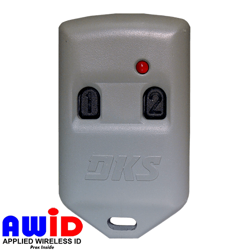 The DoorKing MicroClik Two Button model 8067080-sn-a is the same as DoorKing’s model 8067-082. Special order version programmed to your specific facility code and desired serial numbers. These transmitters operate at 318 MHz frequency and feature a built-in AWID proximity coil for dual use with AWID and compatible access card readers. The MicroClik remotes ARE NOT compatible with DoorKing’s black MicroPlus remotes and receivers.