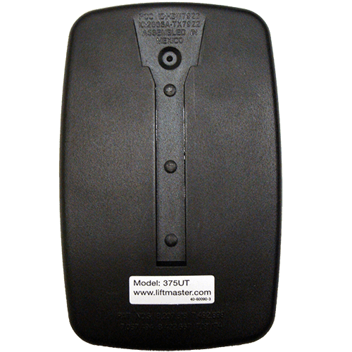 The Liftmaster 375UT is a 2-button universal visor style remote. This transmitter is compatible with the following garage brands that program with a “Smart Learn” button: Liftmaster, Chamberlain, Raynor, Sears, Craftsman, Master Mechanic, AccessMaster, Genie, Overhead Door, Linear, Stanley and Wayne-Dalton (372 MHz). Also compatible with older dip switch brands: Multi-Code, Linear Delta3 and Stanley. The dual button design allows you to program different brands to each button for maximum flexibility and functionality. Liftmaster’s 375ut is constructed from quality materials and comes with a one-year factory warranty.
