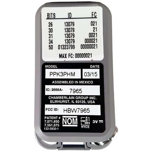 The Liftmaster PPK3PHM is a three-button keychain transmitter. This remote is compatible with Liftmaster Passport 2.0 receivers and commercial gate/door operators. The ppk3phm also features Liftmaster’s MAX technology for use on Liftmaster, Chamberlain, Raynor, Sears Craftsman, Master Mechanic and AccessMaster garage operators made 1993-present. Built-in HID prox chip for use on HID card/fob readers.