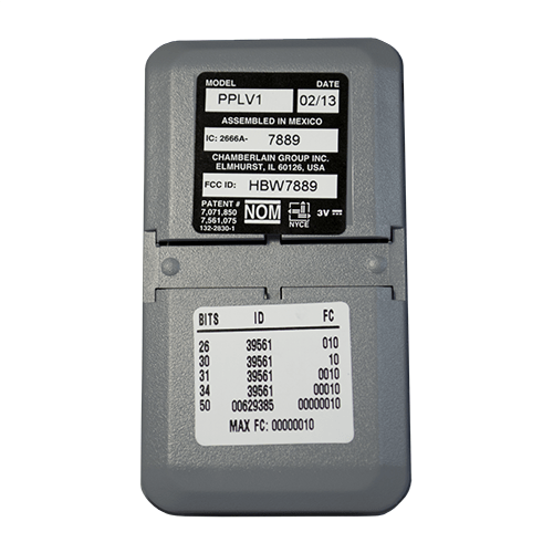 The Liftmaster PPLV1 is a single button visor style remote. This transmitter works with Liftmaster Security+ 2.0 commercial gate/garage operators, CAPXL telephone entry units and Passport 2.0 radio receivers. NOT COMPATIBLE WITH INDIVIDUAL RESIDENTIAL GARAGE DOOR OPERATORS.