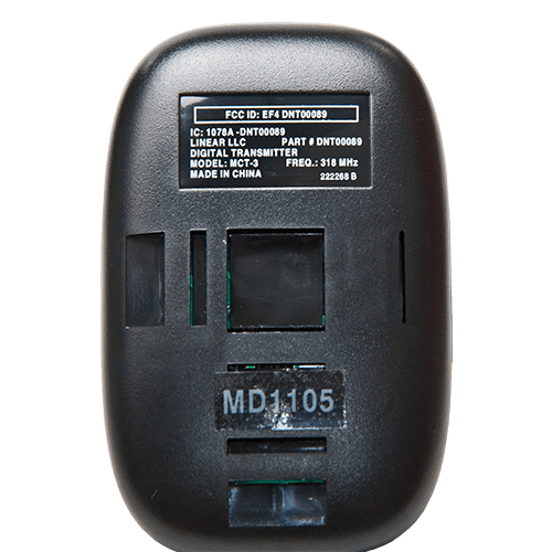 The Linear MCT-3 is a three-button transmitter that operates at 318 MHz and works with Linear garages and radio receivers that program with a smart “Learn Button”. Each remote is pre-coded with its own individual code.