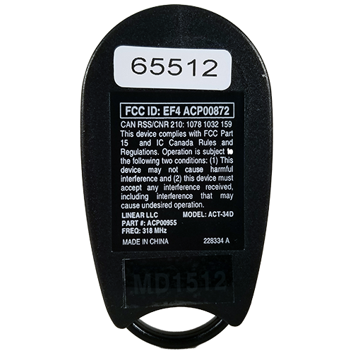 Linear MegaCode ACT-34D Four Button Keychain Remote w/TRANS PROX Built In