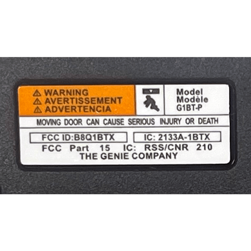 The Genie G1BT-P is a single button remote control that operates at a dual 315/390 MHz frequency. These remotes feature Genie’s Intellicode rolling code encryption technology. The G1BT-P works with all Genie and Overhead Door garage operators made from 1995-present that have a smart “Learn Button”.