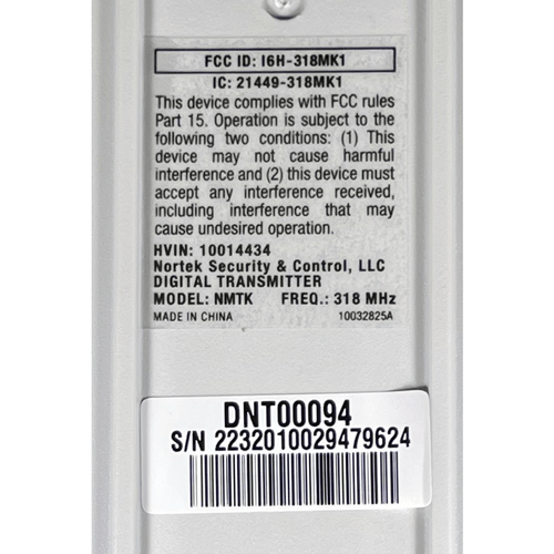 The Linear NMTK is a wireless keypad that operates at 318 MHz. These are compatible with ALL Linear and Moore-O-Matic garage operators and radio receivers that program with a “Smart Learn” button.
